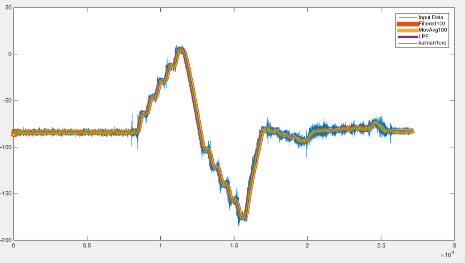 比较一下 “均值”、“低通”、“一阶卡尔曼” 对力矩传感器采集数据的处理,如下图所示: