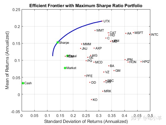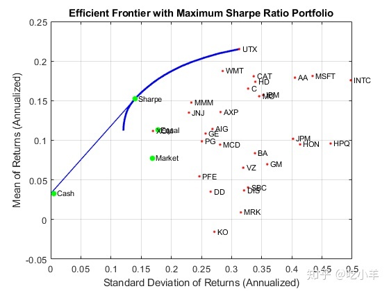 首先用Portfolio创建一个“标准” Portfolio对象,将资产列表、无风险利率以及资产返回时刻合并到该对象中。