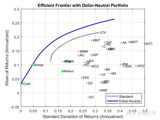 portfolioexamples_plot('Efficient Frontier with Dollar-Neutral Portfolio', ...