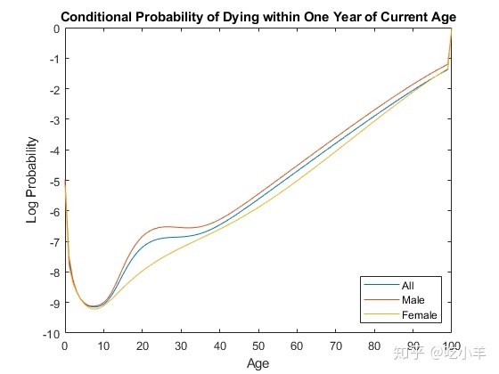 0.0015 0.0018 0.0013绘制qx系列并显示图例。级数qx是一个人在年龄X 时,会在年龄 X 和系列中下一个年龄值之间死亡的条件概率