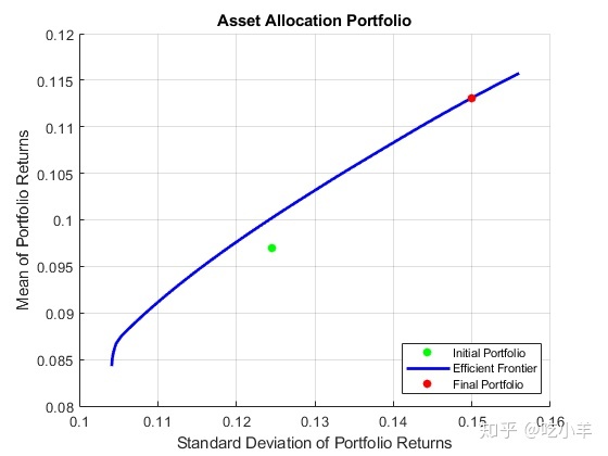 h = legend('Initial Portfolio', 'Efficient Frontier', 'Final Portfolio', 'location', 'best');
