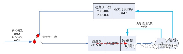 此模式下,上位控制器将计算好的目标转矩 6071h 周期性同步的发送给伺服驱动器,转矩调节由伺服内部执行。当速度达到限幅值后将进入调速阶段
