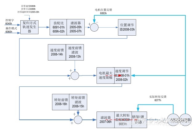 周期同步位置模式下,上位控制器完成位置指令规划,然后将规划好的目标位置 607Ah 上以周期性同步的方式发送给伺服驱动器,位置、速度、转矩控制由伺服驱动器内部完成